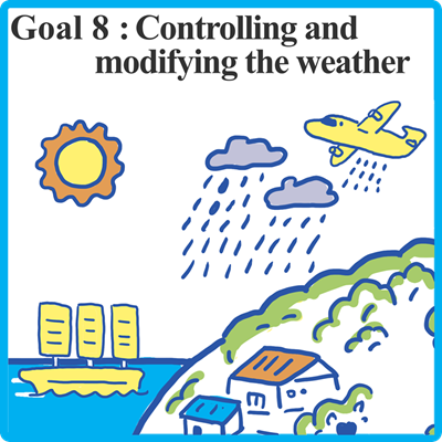 Realization of a society safe from the threat of extreme winds and rains by controlling and modifying the weather by 2050.