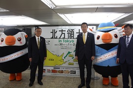 また、一般公開開始後は来場者のお出迎えをし、その後の記者会見では、事業を通じて北方領土問題について関心を持っていただけることを期待する旨を述べました。
