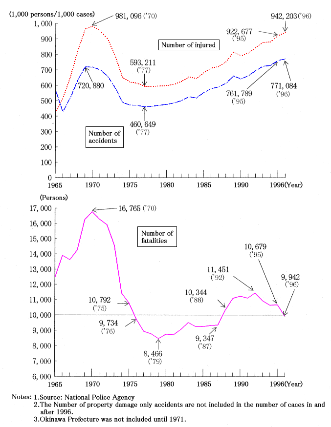 Changes in the Number of Casualties and Accidents in Road Traffic Accidents