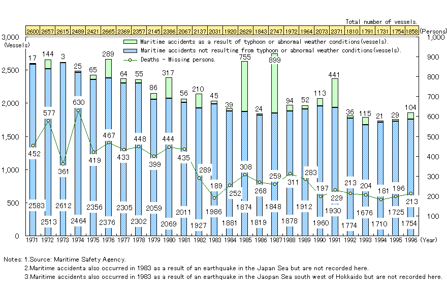 Number of Vessels Requiring Assistance, Death and Missing Persons