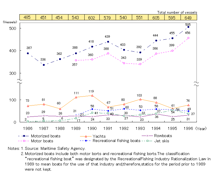Number of Vessels Requiring Assistance Broken Down by Type (not including those effected by typhoon or abnormal weather conditions)