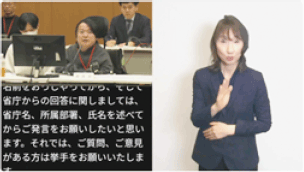 2012年5月に設置された「障害者政策委員会」は、全国の障害のある人を始め関係者の関心が高く、会議運営に当たっても情報保障の観点から、2024年度においても積極的な情報提供に配意した。対面とオンラインのハイブリッド会議による開催とし、会議の開始から終了までの全状況を会議の映像及び音声、手話通訳並びに要約筆記を合成した動画をリアルタイムで配信した。また、その動画を内閣府のホームページにおいて一定期間公開したほか、会議資料を当日までに内閣府のホームページに掲載することとし、終了した会議についても議事録を掲載している。