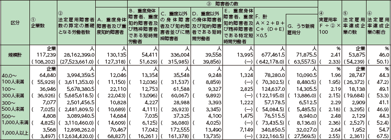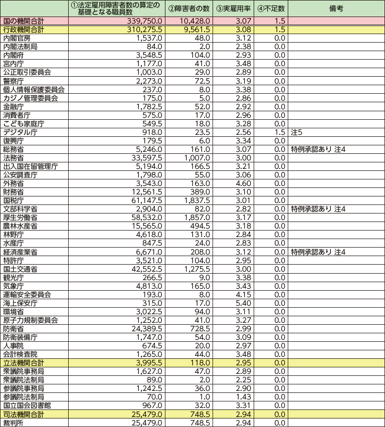 - 身体障害者(重度身体障害者はダブルカウント)、知的障害者(重度知的障害者はダブルカウント)、精神障害者、