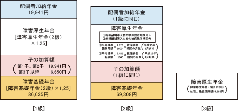 2004年改正の際、障害を有しながら働いたことを年金制度上評価する仕組みとして障害基礎年金と老齢厚生年金等の併給を可能とする障害年金の改善等が行われているほか、2011年4月から、障害年金受給者に対する、子や配偶者がいる場合の加算の対象範囲が拡大された。