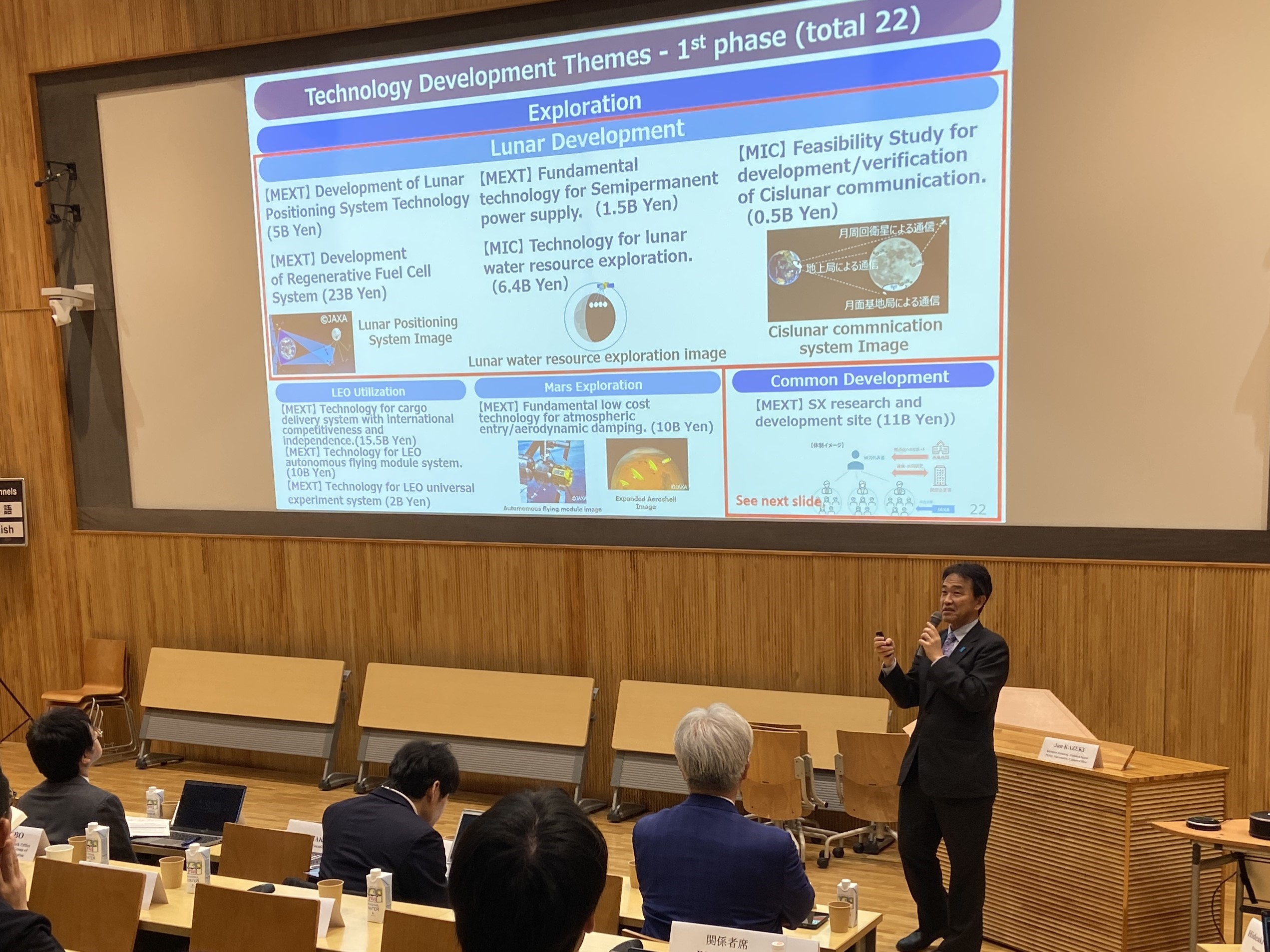 令和8年3月9日(月)、風木内閣府宇宙開発戦略推進事務局は、東京大学未来ビジョン研究センター、東京大学宇宙資源連携研究機構及びLunar Policy Platformが主催する宇宙資源活動に関する宇宙法政策シンポジウム(於:東京大学)の基調講演に登壇し、 月資源開発に関する日本の宇宙政策及び法について講演しました。